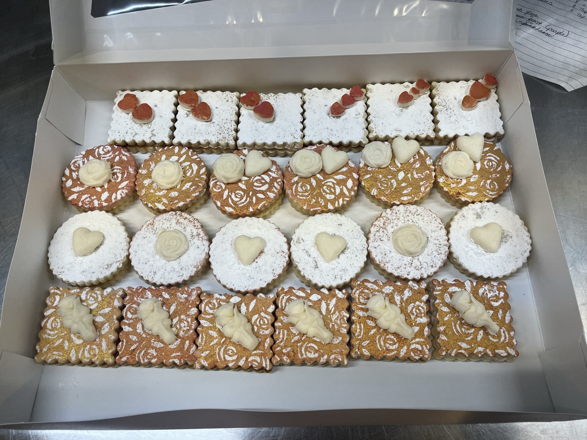We have several flavor combinations, and decorating styles. Contact Kelly for more information, including samples and pricing!